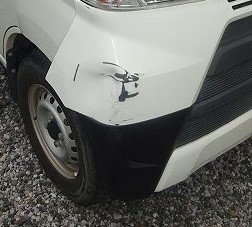写真でも見てわかる通り、フロントバンパーが損傷により剥がれてしまっております...