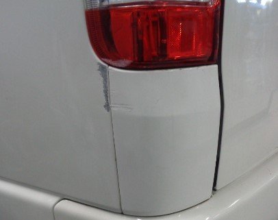 クォーターパネルとリアバンパーの損傷部分を確認。