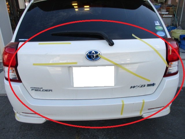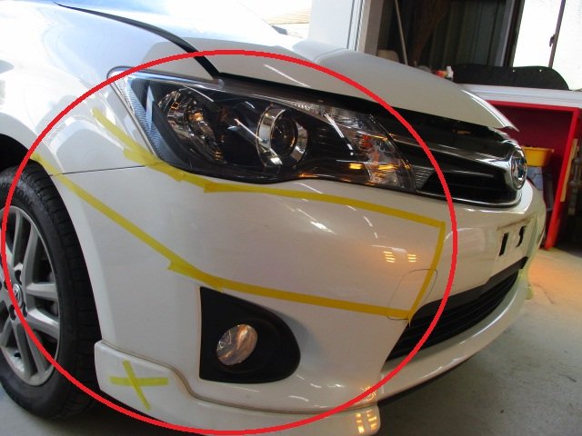【君津市・富津市・木更津市・袖ケ浦市】 カローラフィールダー フロントバンパー/ フロントスポイラー/ フロントグリル/ 左右ヘッドライト/ ボンネット/右フェンダー/ 左フェンダー/バックドア/ 左右テールランプ/ リアバンパー キズへこみ修理