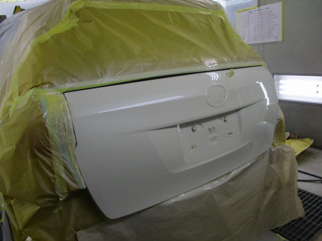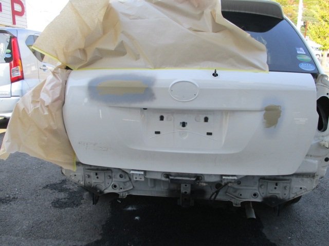 板金修理が終わったバックドアを調色したカラーで塗装し、交換パーツを取付け作業完了です。