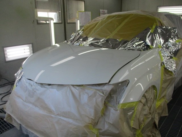 フロントバンパーは、キズのみだった為、樹脂用のパテを使い修理を行い、調色したカラーで塗装を行いました。