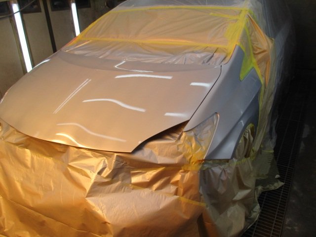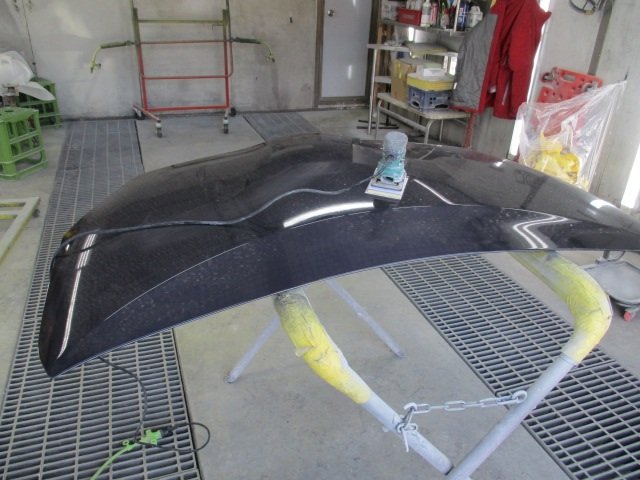 ボンネットやフェンダーの交換が終わったら、調色したカラーで塗装し、クリアを噴きかけツヤと光沢を出しました。
