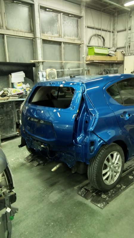 停まっていたところ、後方より突っ込まれました。ガラスは飛び散り、車内は見るも無残な状況でした。相手保険会社より全損の為、20万円弱しか出せないとの事でした。相手方様が対物超過特約を付保していてくれたので、プラス50万円の合計70万円弱で修理が可能なら払えますとの事。実際には90-100万円程度の損害でしたが、ユーザー様のご意向やご同意もあり、修理させて頂きました。