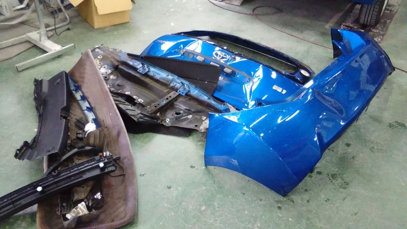 東京都葛飾区|アクア(トヨタ)のキズ・へこみ直し事例(フロントバンパー交換、エーミング)