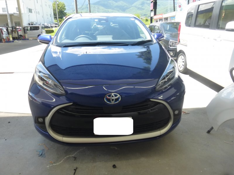 【長野県 長野市 上伊那郡 伊那市 伊那北 箕輪村 南箕輪 辰野町】トヨタ プリウス、令和1年8月式、DAA-ZVW51、フロントバンパー、左ヘッドライトユニット交換(取替)、フロントフェンダーキズ・ヘコミ修理事例、最安値、最短修理日数、安心安全