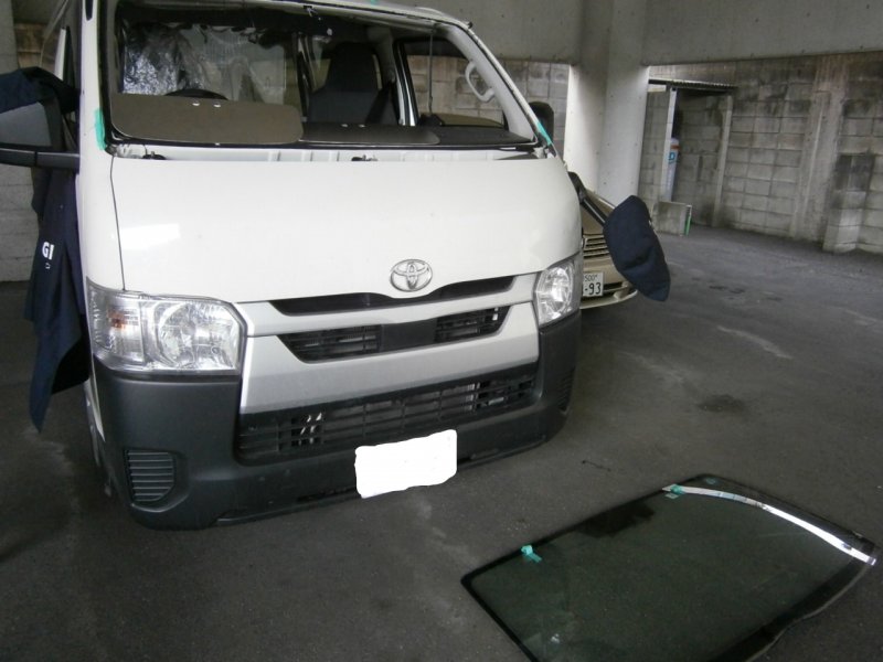 福岡市博多区トヨタ・ハイエース、ガラス交換、エーミング作業