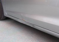 お客様が走行中に縁石にぶつかりステップバーにキズとへこみが発生。