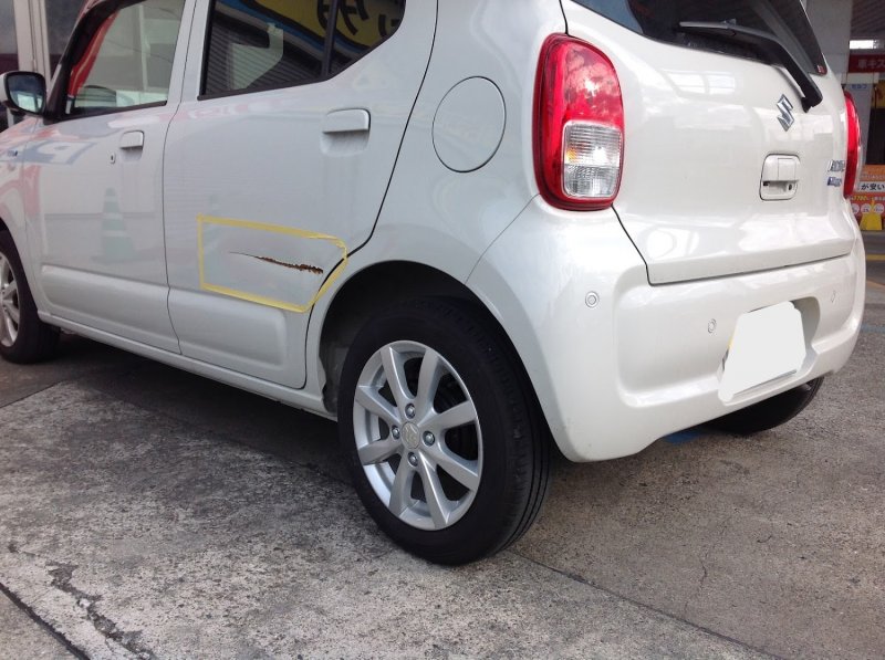 福岡県太宰府市|アルト(スズキ)のキズ・へこみ直し事例(左後ろドアパネル他 キズ ヘコミ 修理 鈑金 )