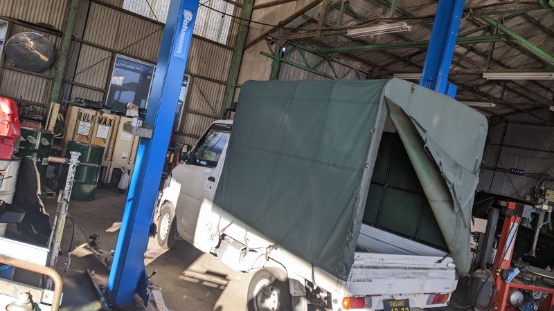 軽トラックのホロ仕様変更に伴い、点検を実施。すると、ホロの取り付け金具が法規制に適合していない状態で取り付けられていました。