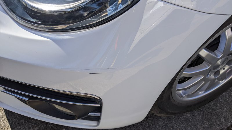 今回のビートルは、フロントバンパーの左前角に接触跡が見られ、塗装が剥がれ、下地が露出してしまっていました。