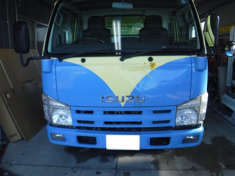 いすゞ エルフ フロントパネル鈑金修理事例 栃木市野木町、佐野市、鹿沼市、小山市