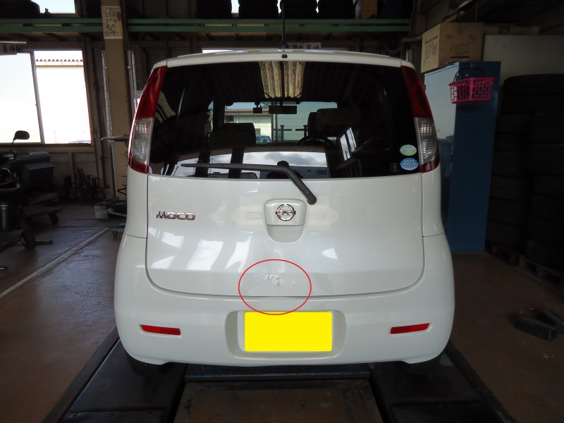 【長野県 上田市 城下 信濃国分寺 東御市 坂城町】日産・モコ、X、平成25年10月式、DBA-MG33S、【保険修理対応】バックドア(リヤゲート)交換、リヤバンパー交換、バックパネルキズ・歪み修正作業事例、後ろ廻り破損修理、リヤゲートぶつかり修復、最安値、激安修理、最短修理日数時間、代車有、安心安全鈑金塗装