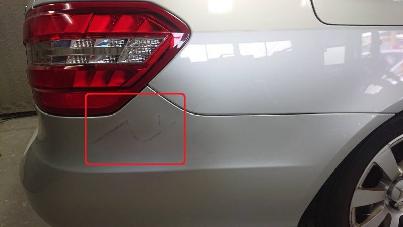 今回ご紹介させて頂くのは輸入車(外国車)メルセデス・ベンツについてしまった、リヤバンパーキズ・ヘコミ修理作業のご紹介になります。お客様よりリヤバンパーキズ・ヘコミ修理のご依頼を受けてご来店して頂けました。早速修理のお見積りを作成いたします。輸入車(外国車)のリヤバンパーとなると部品代金だけでも高額な品になる事が想定できます。お客様もなるべくお安く修理したいとのご要望が御座いました。