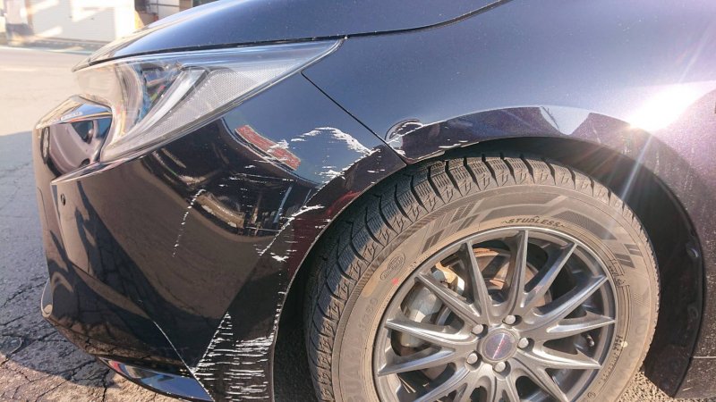 先日、いつも当店をご利用いただいているお客様から、「カローラフィールダーのフロントバンパーとフェンダーにキズとヘコミができちゃったの…」とご相談がありました