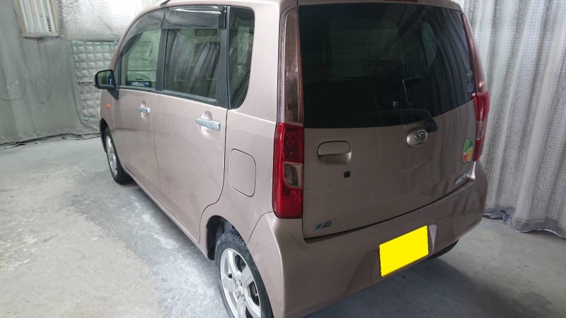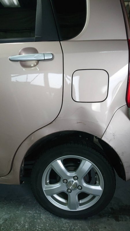 カーコンビニ倶楽部 上田神科店のスタッフです。今回は、ダイハツ ムーヴの左クオーターパネルのキズ・へこみ修理の作業事例をご紹介します。