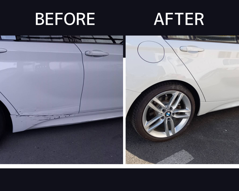 静岡県藤枝市|118d(BMW)のキズ・へこみ直し事例(右リアドア修理 クォーターパネル修理 サイドシルパネル修理 リアバンパー修理)