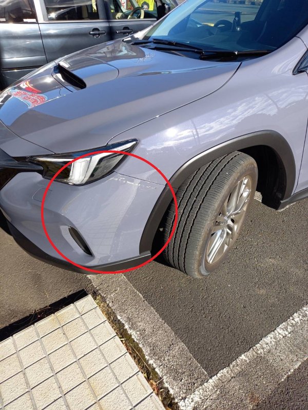 スバルレヴォーグ、フロントバンパーの鈑金修理になります。