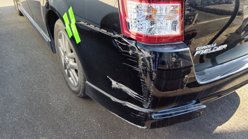 愛知県豊橋市カローラフィールダー(トヨタ)のキズ・へこみ直し事例(リアバンパー交換・左テールレンズ交換)