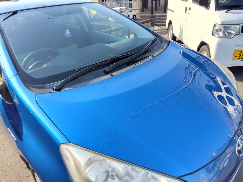 愛知県豊橋市|アクア(トヨタ)のキズ・へこみ直し事例(ボンネット板金塗装)