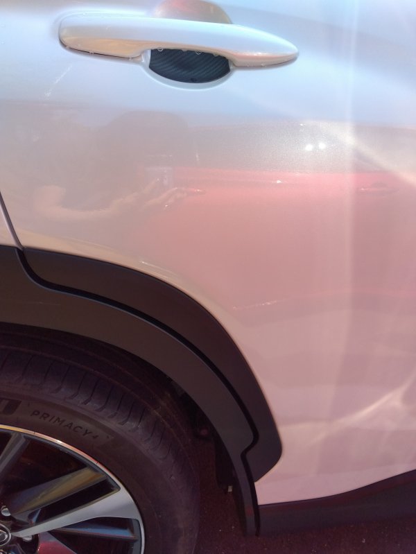 パテ埋めをして整形し、ドアを1枚塗装しました。へこみの範囲が広く、パールホワイトの塗装は高額になってしまいます。