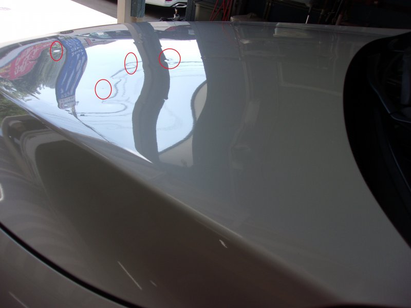 雹害(ひょうがい)により、ボンネットに多数のへこみが出来てしまい、当店にご相談いただきました。