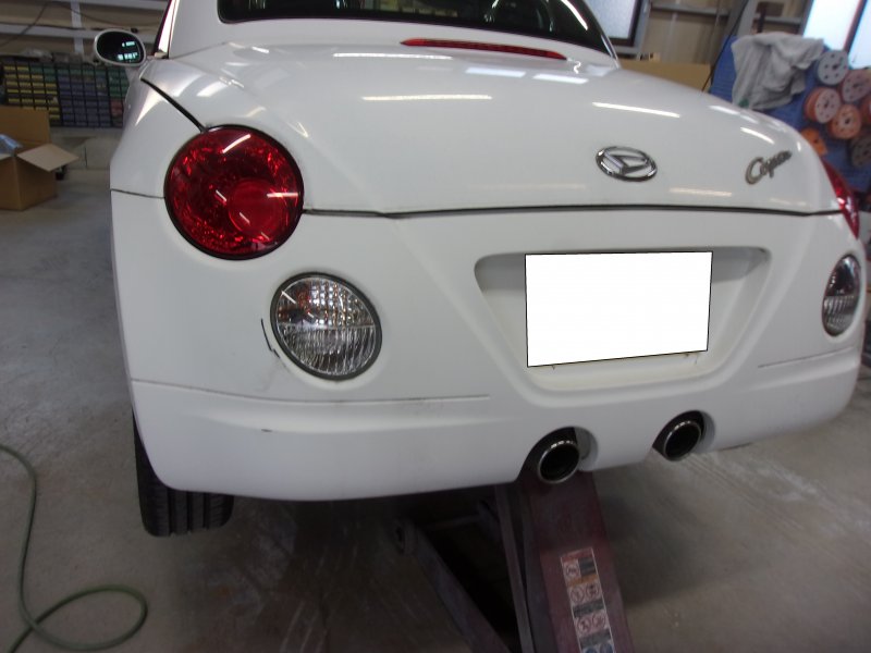 群馬県桐生市|コペン(ダイハツ)のキズ・へこみ直し事例(リアバンパー キズ・へこみ) 2025/10/30 - キズ・へこみ直し