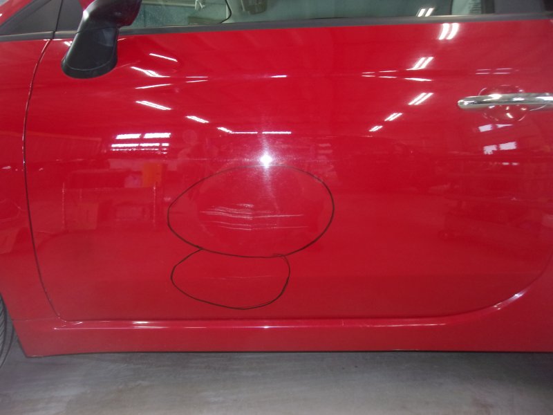 損傷箇所は、左リアドアと左リアクォーターパネルになります。