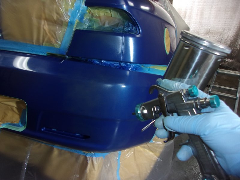 リアバンパーはまず損傷箇所の引き出し作業を行い、パテで形を整えていきます。
