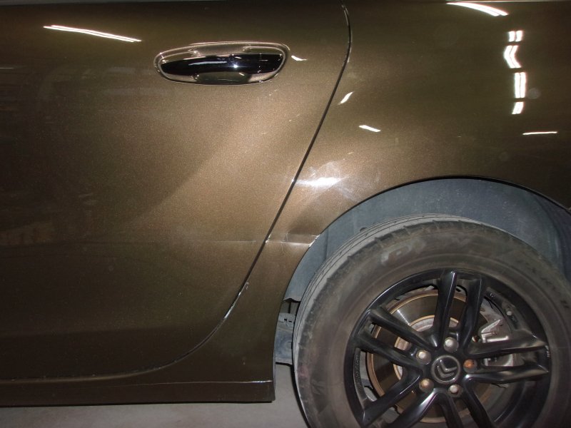 群馬県桐生市|デミオ(マツダ)のキズ・へこみ直し事例(左リアドア+左リアクォーターパネル キズ・へこみ直し 板金修理)