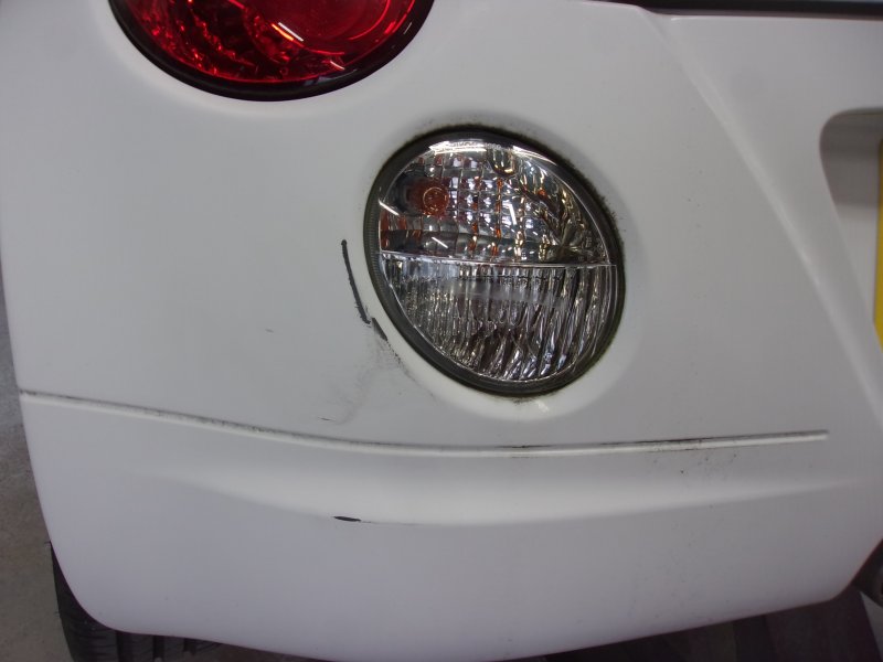 今回はダイハツ コペンのリアバンパーのキズ・へこみ直しを行いました。