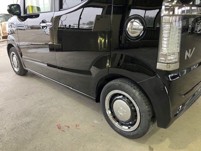千葉市|千葉市若葉区|ホンダ N BOXスラッシュ 左リヤドアパネル 左サイドシルピラーセンタ 左リヤアウトサイドパネル リヤバンパー ホイールハーフトリム 板金 鈑金 修理 キズ へこみ キズ修理 へこみ修理 取替 交換 保険 保険修理