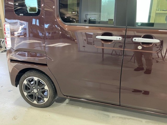 千葉市|千葉市若葉区|ダイハツ タント リヤバンパー 右クォーターパネル 右テールレンズ 板金 鈑金 修理 キズ へこみ キズ修理 へこみ修理 取替 交換 保険 保険修理