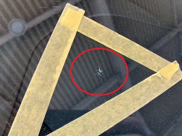 確認しますとヒビが数本出来ております。修理して伸びてしまう可能性もありますので、ご相談の結果、ガラスを交換することになりました。カメラ付きのお車の為、純正ガラス交換でのお見積りを作成させて頂きましてご了承いただけました。高額になる為、車両保険を使用するとなりました。部品が入荷したら再度お預かりとなりました!(^^)