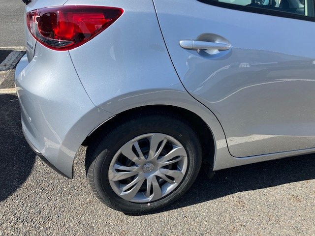 千葉市|千葉市若葉区|マツダ マツダ2 右リヤドアパネル 右リヤフェンダパネル リヤバンパー 板金 鈑金 修理 キズ へこみ キズ修理 へこみ修理 取替 交換 保険 保険修理