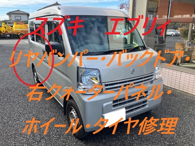 千葉市|千葉市若葉区|スズキ エブリィ リヤバンパー バックドア 右クォーターパネル ホイール タイヤ 板金 鈑金 修理 キズ へこみ キズ修理 へこみ修理 取替 交換 保険 保険修理