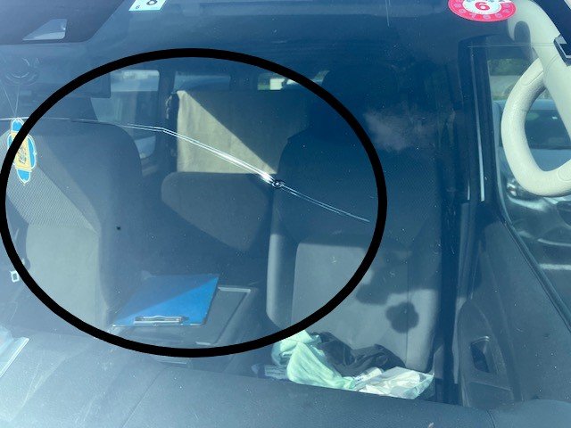 走行中に飛び石にあい、そのままにして使用していたらしいです。