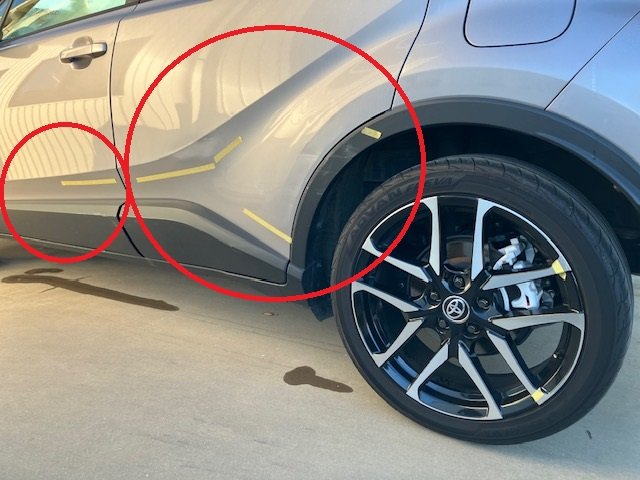 千葉市|千葉市若葉区|トヨタ C-HR 左フロントドア 左リヤドア 左クォーターパネル 板金 鈑金 修理 交換 取替 キズ へこみ キズ修理 へこみ修理