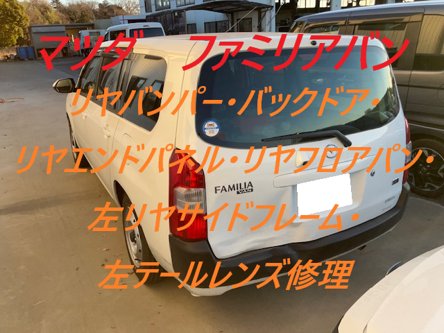 千葉市|千葉市若葉区|マツダ ファミリアバン リヤバンパー バックドア リヤバックパネル 左リヤサイドフレーム 左テールレンズ 板金 鈑金 修理 キズ へこみ キズ修理 へこみ修理 取替 交換 保険 保険修理