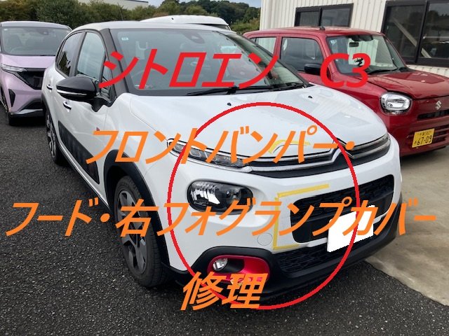 千葉市|千葉市若葉区|シトロエン C3 フロントバンパー フード(ボンネット) 板金 鈑金 修理 キズ へこみ キズ修理 へこみ修理 取替 交換 保険 保険修理