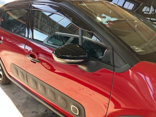 千葉市|千葉市若葉区|シトロエン C3 右ドアミラー 右フロントドアガラス 板金 鈑金 修理 キズ へこみ キズ修理 へこみ修理 取替 交換 保険 保険修理