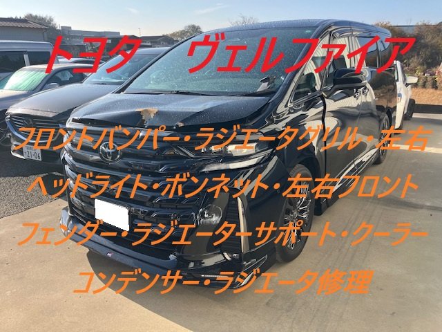 千葉市|千葉市若葉区|トヨタ ヴェルファイア フロントバンパー ラジエータグリル 左右ヘッドライト 左右フロントフェンダー ラジエータサポート クーラーコンデンサー ラジエータ 板金 鈑金 修理 キズ へこみ キズ修理 へこみ修理 取替 交換 保険 保険修理