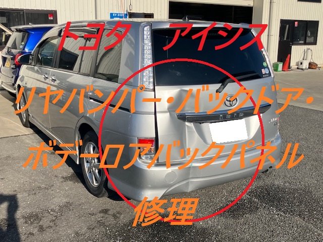 千葉市|千葉市若葉区|トヨタ アイシス リヤバンパー バックドアパネル ボデーロワバックパネル 板金 鈑金 修理 キズ へこみ キズ修理 へこみ修理 取替 交換 保険 保険修理