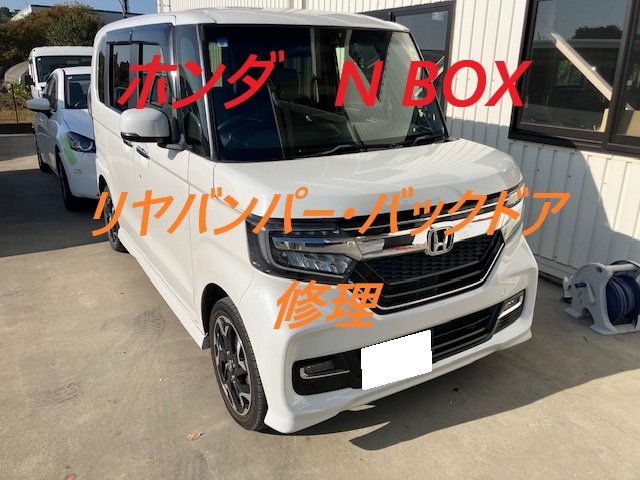 千葉市|千葉市若葉区|ホンダ N BOX リヤバンパー バックドア 板金 鈑金 修理 キズ へこみ キズ修理 へこみ修理 取替 交換 保険 保険修理