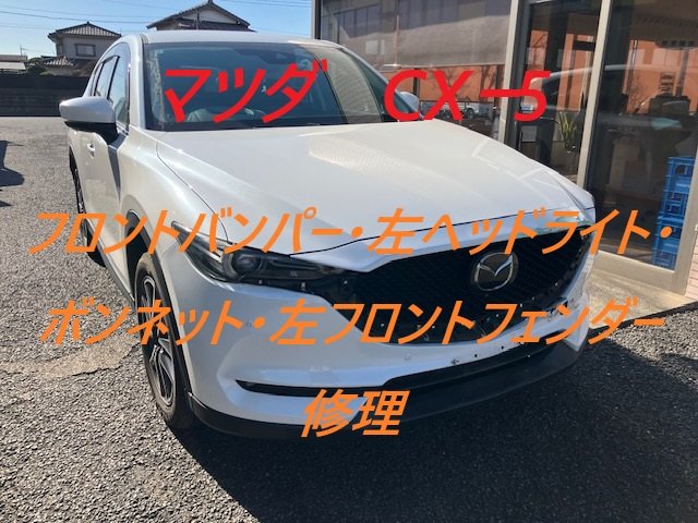 佐倉市|マツダ CX-5 フロントバンパー 左ヘッドライト ボンネット 左フロントフェンダー 板金 鈑金 修理 キズ へこみ キズ修理 へこみ修理 取替 交換 保険 保険修理