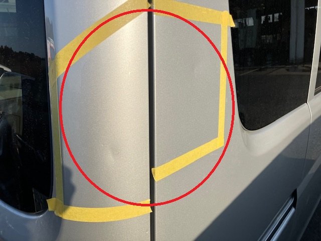 お客様のお話しですと、停車している所に物をぶつられてしまったそうです。微妙なヘコミが出来てしまっております。(-_-;)