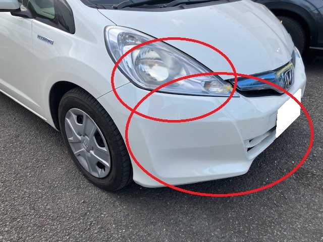 佐倉市|ホンダ フィット フロントバンパー 右ヘッドライト 左ヘッドライト フロントバルクヘッドASSY 板金 鈑金 修理 キズ へこみ キズ修理 へこみ修理 取替 交換 保険 保険修理