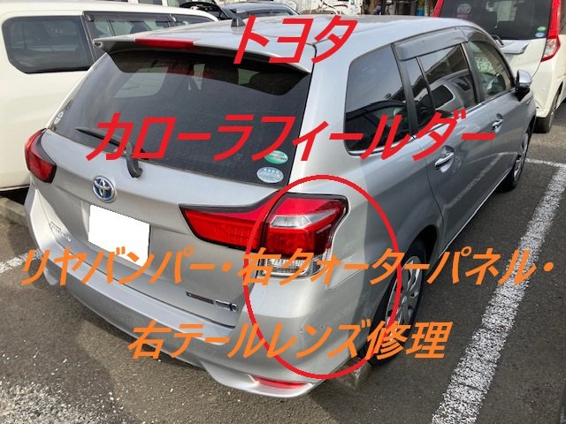 佐倉市|トヨタ カローラフィールダー リヤバンパー 右クォーターパネル 右テールレンズ 板金 鈑金 修理 キズ へこみ キズ修理 へこみ修理 取替 交換 保険 保険修理