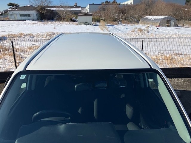 お客様のお話しですと、強風の日に、走行中に看板が飛んできて屋根にあたったそうです。その際、フロントガラスにもヒビが入ってしまったそうです。(-_-;)