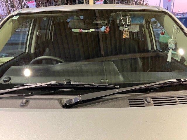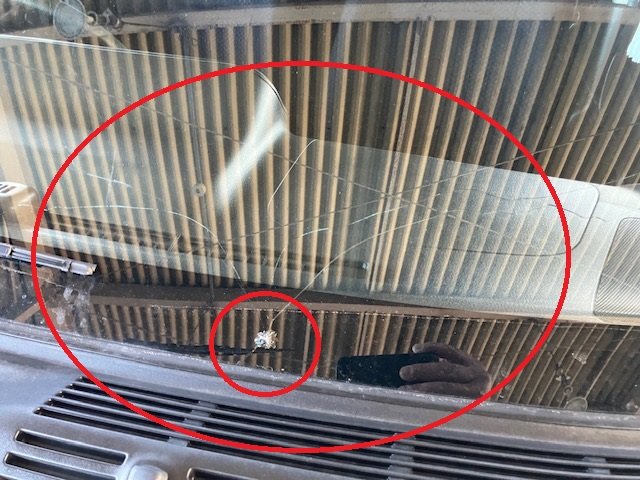 お客様のお話しですと、走行中に何かが飛んできたみたいで、「ピシ」と音がして、フロントガラスにキズが出来て、その後、日に日にヒビが伸びてしまい今に至るそうです。(-_-;)