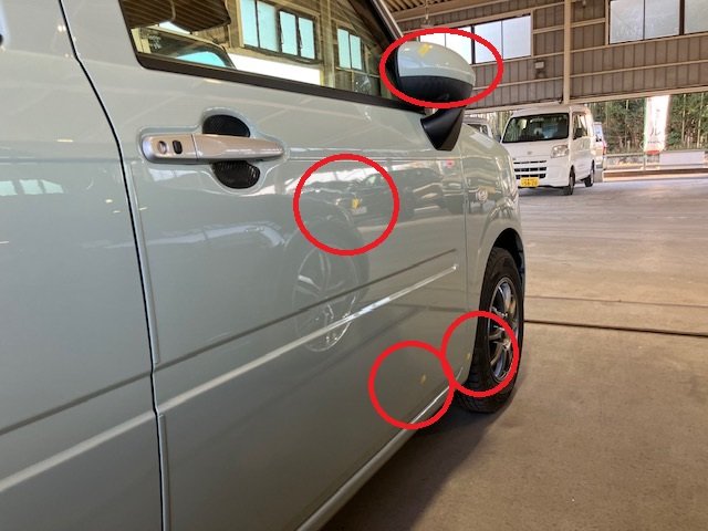 お客様のお話しですと、中古車で現状のまま購入したお車で、これから乗るのにキズなどを直し綺麗にして乗りたいと言う事でご来店いただきました。キズなどが数か所あります。(-_-;)